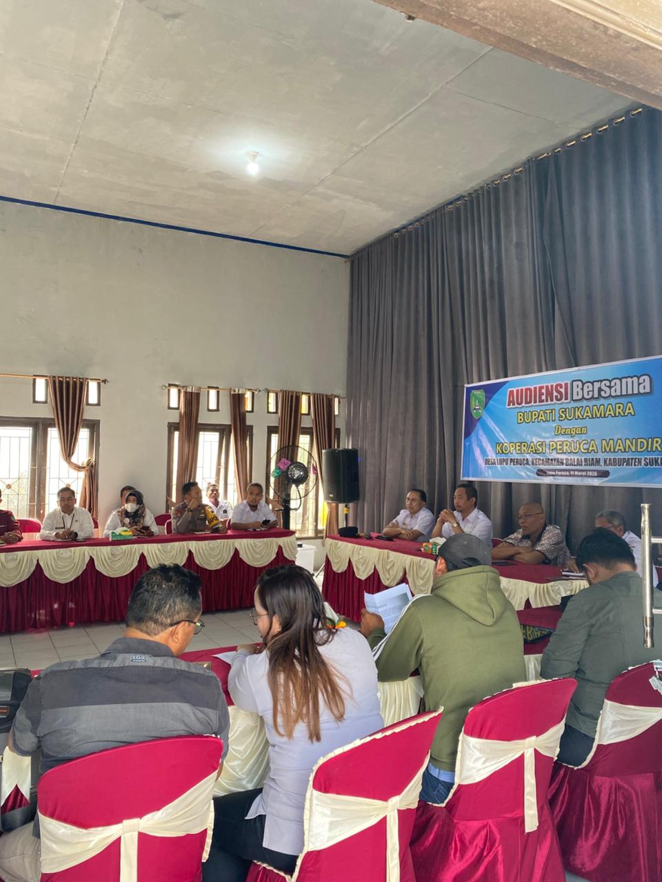 Pemerintah Desa Desa Lupu Peruca menerima kunjungan audiensi dari Bapak Bupati Kabupaten Sukamara, H. MASDUKI, S.T. pada Rabu (11/03/2026). Kegiatan audiensi tersebut dilaksanakan di Balai Desa Lupu Peruca dan membahas berbagai permasalahan yang berkaitan dengan pengelolaan lahan oleh Koperasi Peruca Mandiri. Kegiatan ini dihadiri oleh sejumlah unsur pemerintah daerah dan pemangku kepentingan, di antaranya Asisten II Bupati Sukamara, Bagian Perekonomian Sekretariat Daerah Kabupaten Sukamara, Bagian Hukum Kabupaten Sukamara, Dinas Koperasi, Usaha Kecil dan Menengah, Perindustrian dan Perdagangan Kabupaten Sukamara, Camat Balai Riam, Kapolsek Balai Riam, Koramil Balai Riam, Kepala Desa Lupu Peruca, pihak PT. HHK–SBE, serta Pengurus dan Badan Pengawas Koperasi Peruca Mandiri. Audiensi ini dilaksanakan sebagai bentuk perhatian Pemerintah Kabupaten Sukamara terhadap permasalahan yang tengah dihadapi oleh Koperasi Peruca Mandiri, khususnya terkait dengan proses jual beli lahan yang dikelola oleh koperasi dengan para pembeli lahan yang mengajukan keberatannya atas langkah-langkah yang diambil oleh Pihak Koperasi Peruca Mandiri dan Pihak PT. HHK-SBE selaku Mitra Koperasi. Melalui pertemuan ini, berbagai pihak diberikan kesempatan untuk menyampaikan pandangan, penjelasan, serta masukan terkait permasalahan yang terjadi. Pemerintah Kabupaten Sukamara melalui Bupati Sukamara berupaya mendengar langsung aspirasi dan kondisi yang dihadapi oleh koperasi maupun pihak-pihak terkait, sehingga dapat menjadi bahan pertimbangan dalam pengambilan kebijakan. Diharapkan melalui audiensi ini, permasalahan yang terjadi dapat memperoleh perhatian dan penanganan yang baik dari Pemerintah Kabupaten Sukamara. Selain itu, diharapkan pula adanya kebijakan atau langkah-langkah strategis dari Bupati Sukamara yang dapat menjadi alternatif solusi terbaik demi menjaga keberlangsungan Koperasi Peruca Mandiri serta meningkatkan kesejahteraan anggota koperasi dan masyarakat Desa Lupu Peruca pada umumnya.
